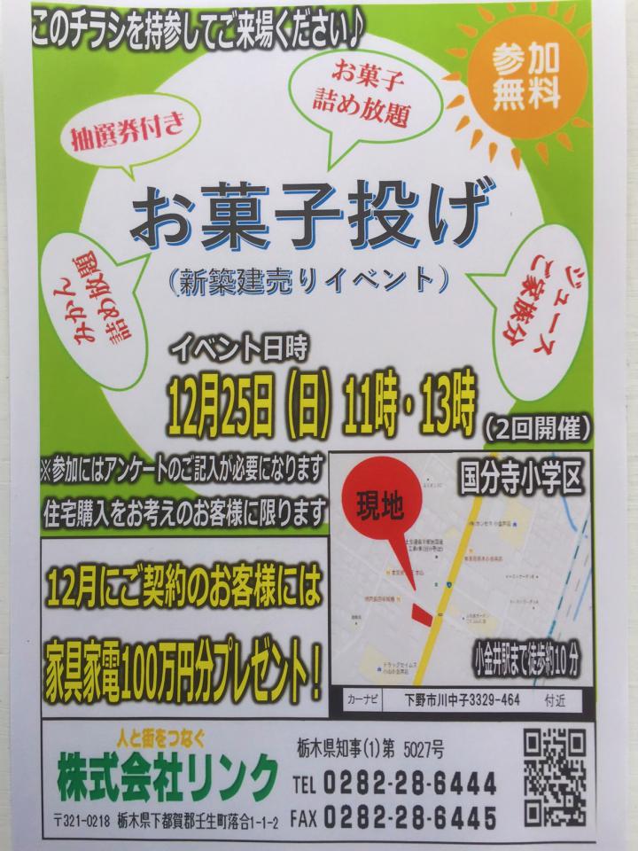 - ★参加無料★12月25日(日)11時・13時に【お菓子投げイベント】開催いたします♪