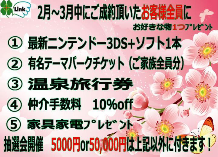 3月末までに新築・中古・土地をお探しの皆様にもれなくお付けいたします!