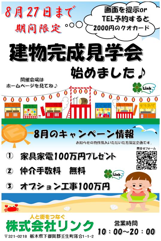 8月27日(日)までの期間限定で当社指定の分譲地をご購入いただきましたお客様に新企画を発信します♪