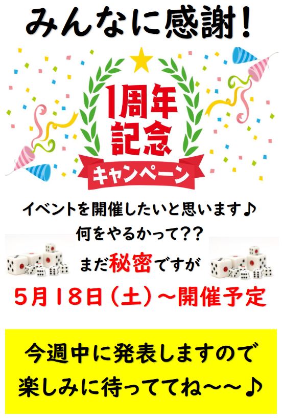 祝 1周年記念!!イベント開催します